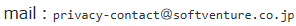 ソフトベンチャー株式会社は、昨今の個人情報に関する度重なる事件の発生を教訓に、事故、事件を未然に防ぎ、お客様に対して安心してサービスをご利用いただける環境、体制を構築すべく、以下のとおり個人情報保護方針を定め、実施します。